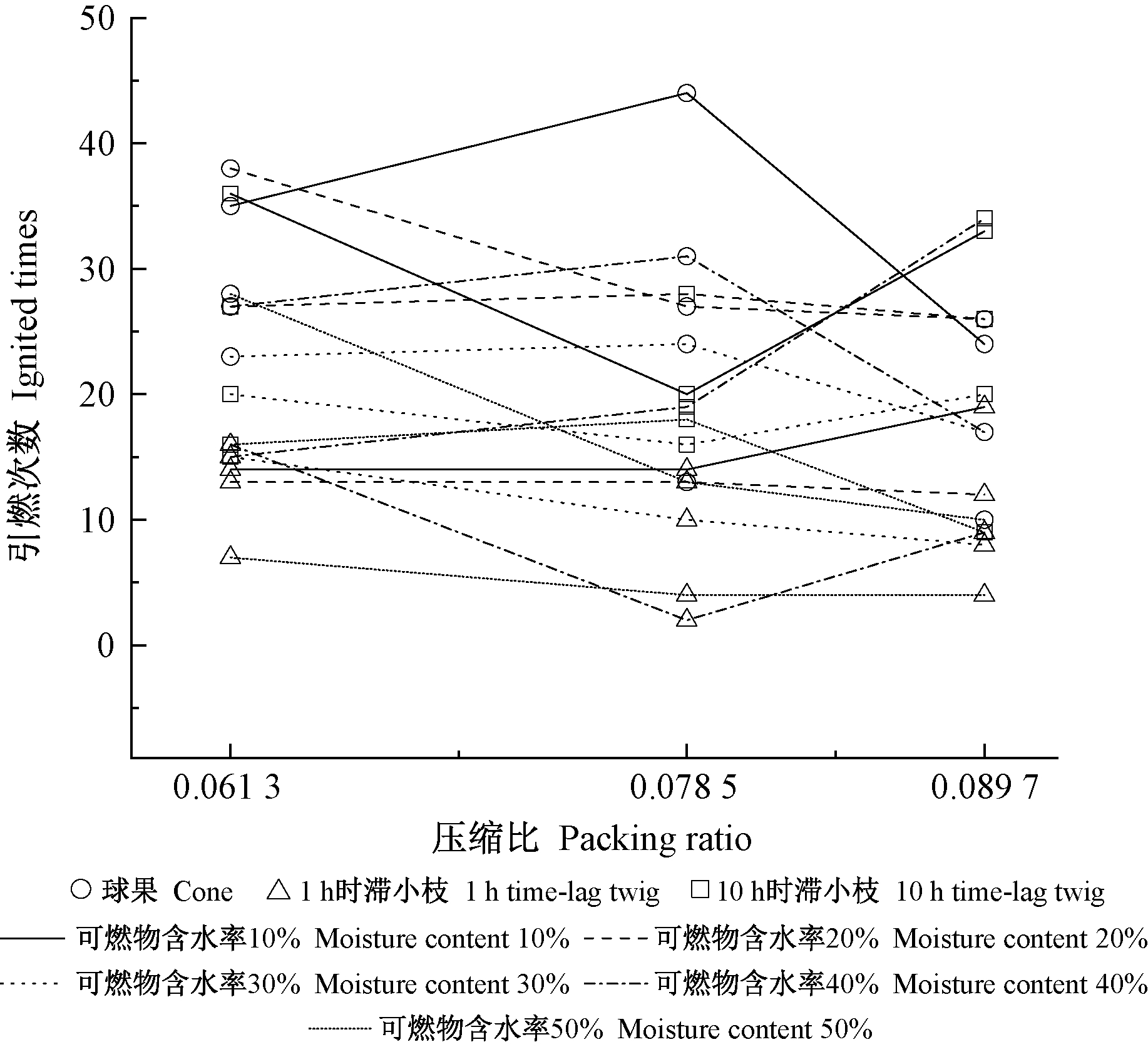 | 火源含水率 Firebrand moisture content | 0 | 1 | 5 |