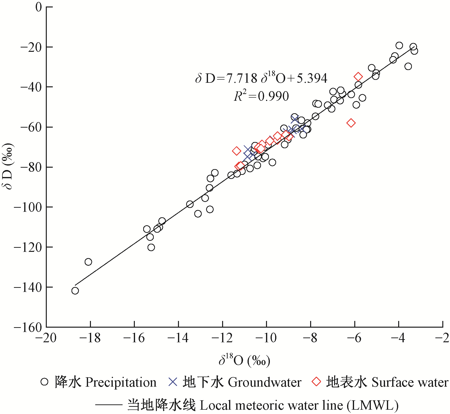 | 浅层地下水 Shallow groundwater | δ D=6.103 δ18O-7.389 | 0.944 | 0.001 | 9 | |