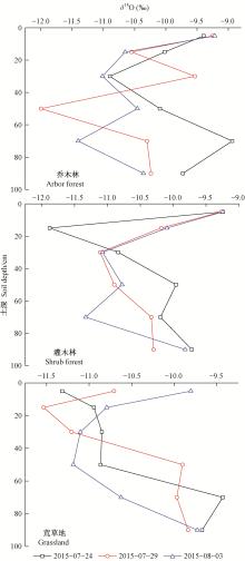 | 土壤水 Soil water | 乔木林Arbor forest | δ D=7.205 δ18O+1.163 | 0.955 | 0.000 | 176 |