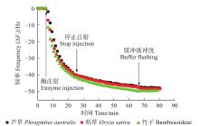 目的: 以稻草、芦草和竹子中不同结构单元木质素为研究对象,借助耗散型石英晶体微天平(QCM-D)技术,原位、实时探究不同结构单元分离木质素与酶吸附的动态行为,为木质素对生物质酶水解的影响提供理论基础、对木质纤维素的高效利用进行定向调控。方法: 原料化学成分参照标准方法测定,分离木质素结构经红外、凝胶渗透色谱和碱性硝基苯氧化表征,采用原子力显微镜观察木质素薄膜表面形貌,借助QCM-D技术分析纤维素酶在木质素薄膜上的吸附行为。结果: 分离木质素均为GSH型木质素,纯度高,含糖量约10%,分子质量接近,约5 000;硝基苯氧化结果显示,稻草、芦草和竹子中木质素结构单元存在差异,竹子中木质素未缩合单元得率最高,为444.4 g·kg?1,S/G比为1∶0.6,芦草、稻草中木质素S/G比均为1∶1.1;经QCM-D分析,竹子木质素薄膜对纤维素酶吸附速率最快、吸附量最大,芦草和稻草木质素薄膜对纤维素酶的吸附速率和最大吸附量相近;停止通酶后,用缓冲液冲洗,纤维素酶附着在木质素上难以被洗脱。酶吸附过程中3种木质素表面均具有较好的黏弹性,且黏弹性差异不大。结论: 稻草、芦草和竹子中木质素对纤维素酶均有明显吸附作用,来源不同的木质素但结构单元相同,对纤维素酶吸附能力相同;木质素结构单元不同,对纤维素酶吸附能力不同。纤维素酶在木质素薄膜表面上结合紧密,难以脱附,S/G比较高的木质素,其纤维素酶吸附能力较强,在纤维素酶水解中产生更多无效吸附,导致葡聚糖转化效率降低。