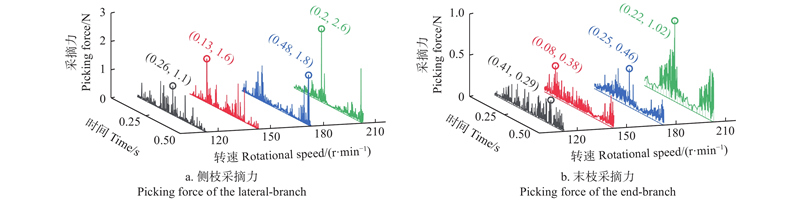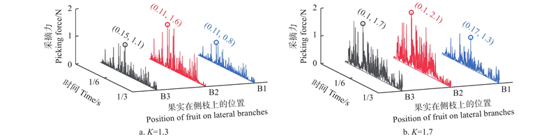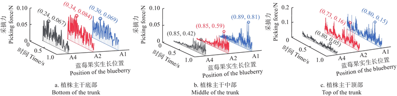 | 2 | A2 | 主干中部侧枝末梢1/3处生长的末枝对应的蓝莓果实采摘力 The picking force of the blueberry fruit corresponding to the last branch growing at one-third of the tip of the middle side branch of the main trunk | 1 |