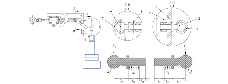 | 4 | 固定副Fixed joint | 连杆轴Connecting rod shaft | 关节轴承b Joint bearing b | 相对静止Relative static |