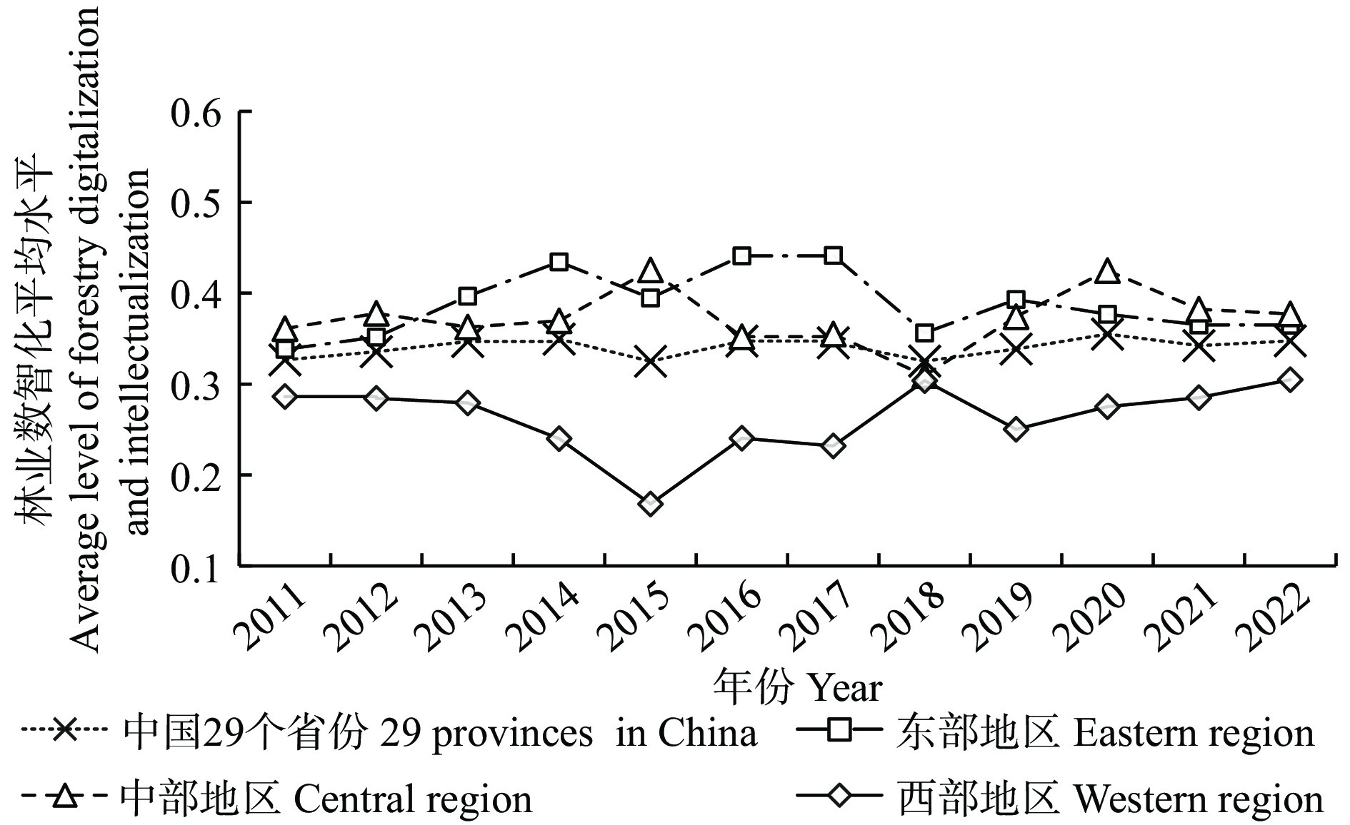 | 变量 Variables | 东部地区 Eastern region | 中部地区 Central region | 西部地区 Western region | 林业数智化 高水平地区 High-level region of forestry digitalization and intellectualization | 林业数智化 低水平地区 Less-developed region of forestry digitalization and intellectualization | 林业资源 利用型地区 Forestry resource utilization region | 林业加工制造型地区Forestry processing- manufacturing region |