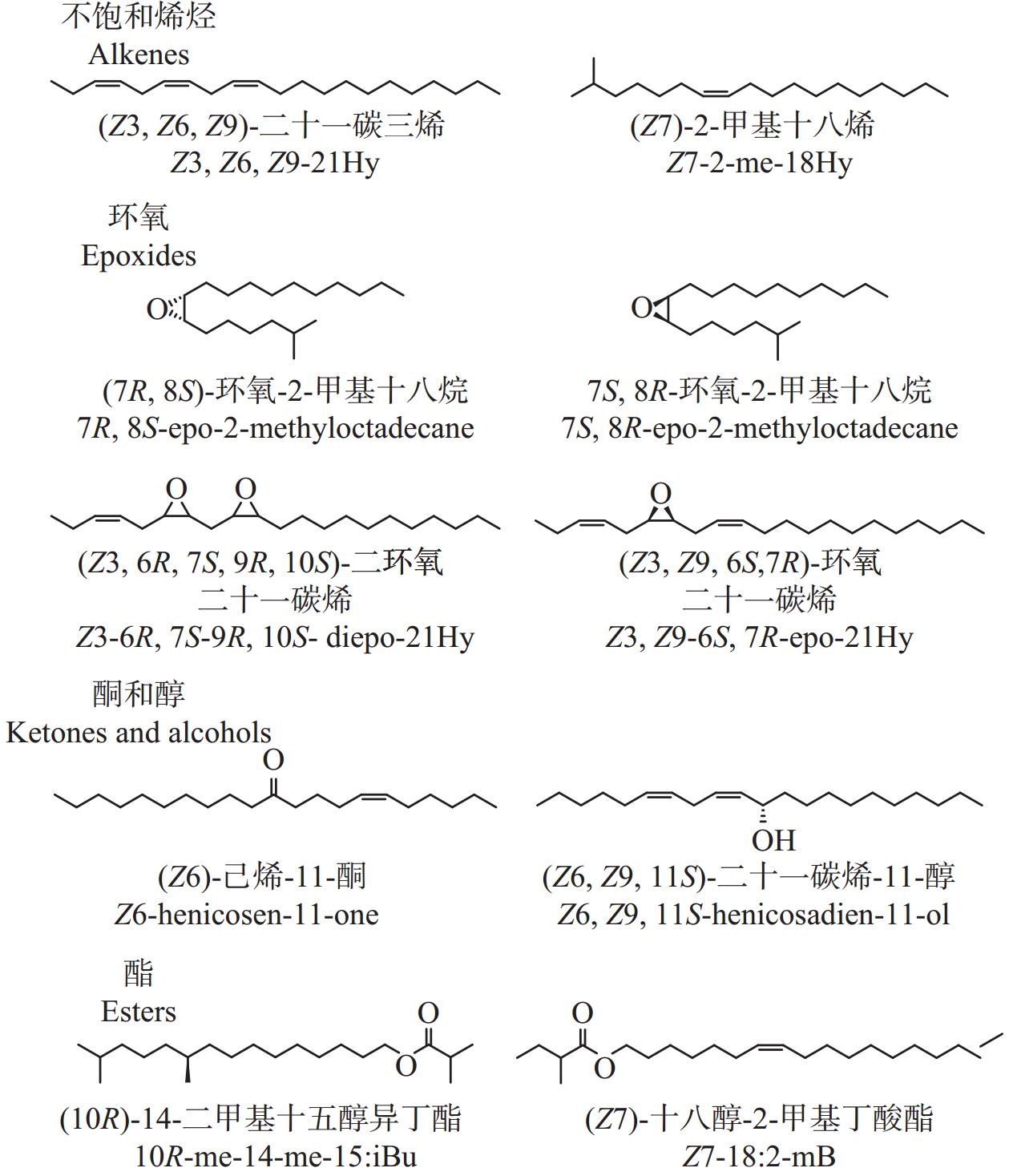 Millar J G. Polyene hydrocarbons and epoxides: a second major class of lepidopteran sex attractant pheromones. Annual Review of Entomology, 2000, 45, 575- 604.