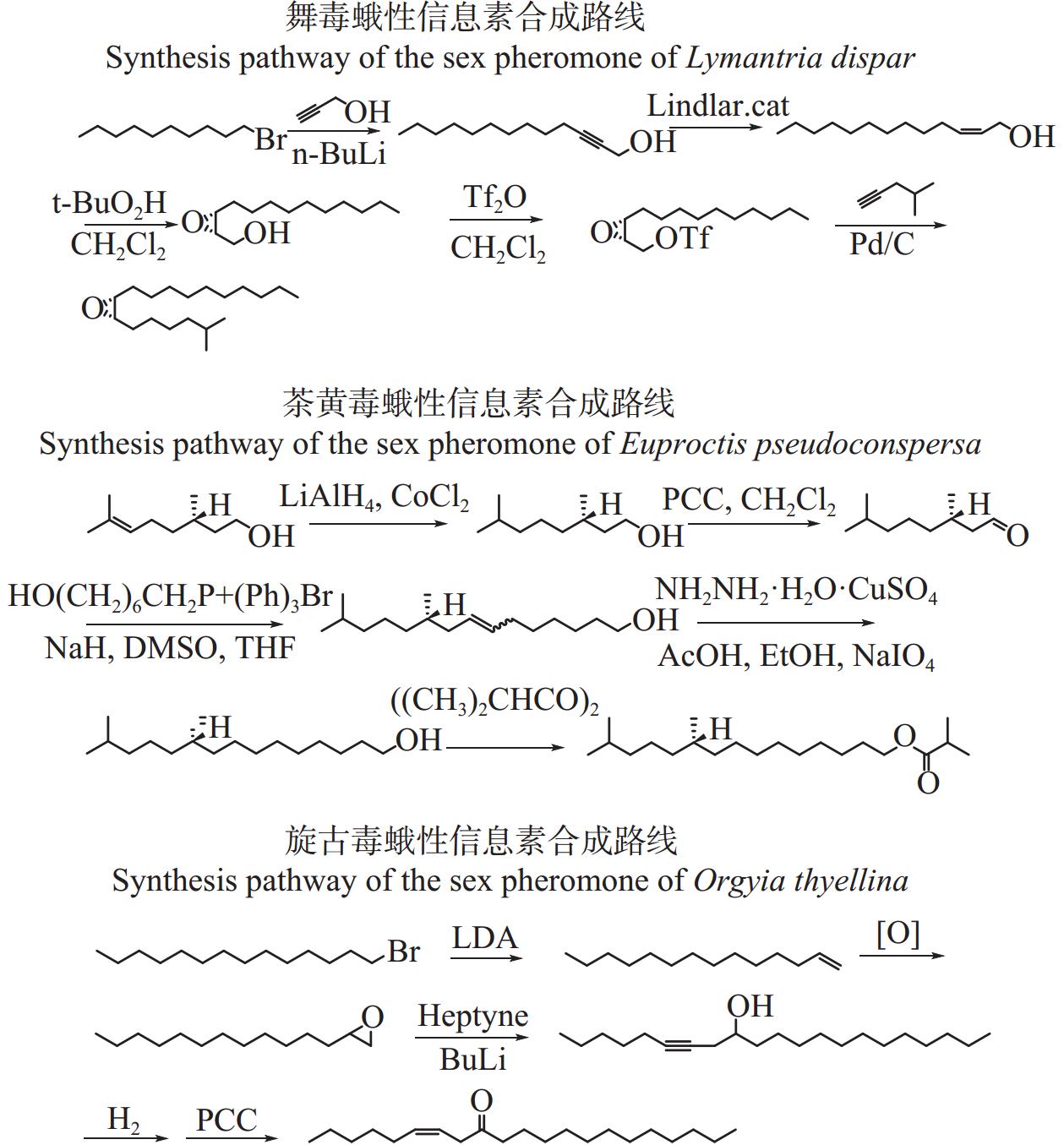 | 刘 福, 袁中伟, 孔祥波, 等. 2020. 6种松毛虫性信息素前体化合物全合成研究进展, 林业科学, 56(4): 170–180. | |