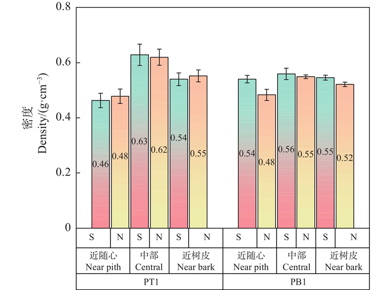 南北朝向心、边材细胞直径和细胞壁厚度①"