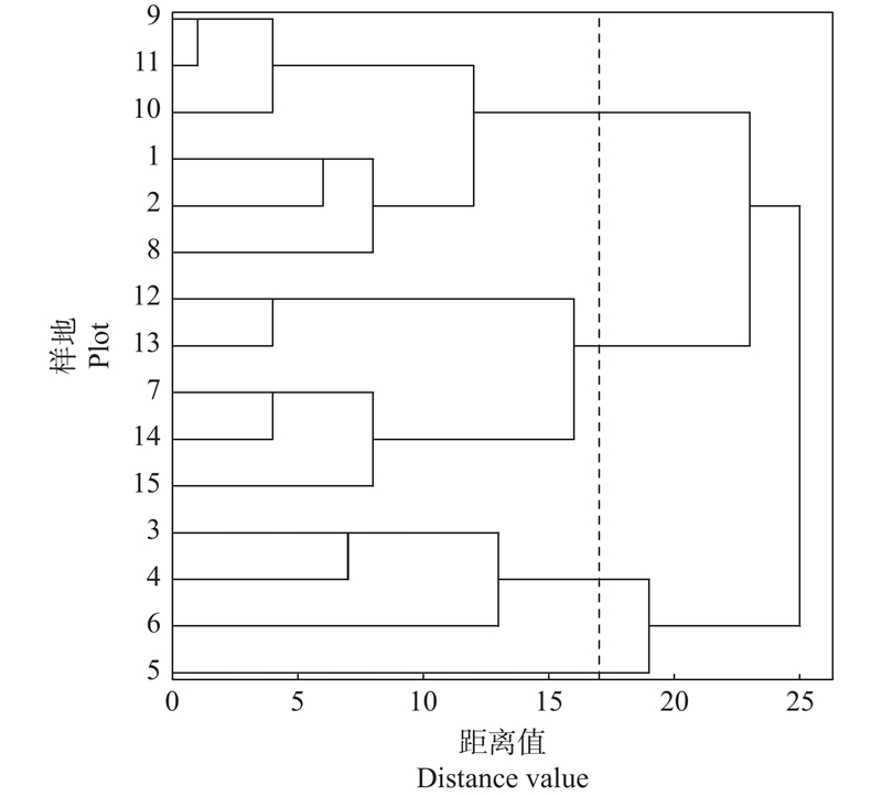 目的: 针对次生林发育阶段划分指标零散、阈值模糊的问题,构建基于林分状态特征的定量化划分方法,探讨发育阶段划分关键指标综合阈值,为次生林修复和全周期可持续经营提供科学依据。方法: 以甘肃小陇山林区不同类型锐齿槲栎次生林为研究对象,选取15个表征林分状态特征的指标,采用系统聚类法对不同类型锐齿槲栎次生林进行聚类,通过Kruskal-Wallis非参数检验筛选影响锐齿槲栎次生林聚类的因子,构建发育阶段划分指标体系;应用层次分析法(AHP)、熵权法(EWM)等确定关键指标综合权重,并结合拉格朗日乘数法计算综合值,给出基于林分状态特征的次生林发育阶段。结果: 1) 基于林分状态特征,采用系统聚类法(以均值距离为度量)将15块样地划分为4个类别,Kruskal-Wallis非参数检验显示,更新等级、蓄积量、林分直径分布q值、平均树高、建群种优势度、角尺度、混交度、Shannon-Wiener指数、Margalef指数、Simpson指数和Pielou指数达到统计学显著水平(P<0.05);2) 选择蓄积量、林分直径分布q值、平均树高、建群种优势度、角尺度、混交度、Shannon-Wiener指数、Margalef指数和更新等级9个指标构成次生林发育阶段划分指标体系,其综合权重分别为17.69%、8.76%、7.09%、14.07%、10.61%、10.75%、10.81%、14.33%和5.89%;基于林分状态特征的次生林发育阶段可划分为更新期(林隙期、郁闭期)、分化期、建成期和稳定期;3) 采用该方法对15块锐齿槲栎次生林样地进行发育阶段划分,2块样地处于更新期、8块样地处于分化期、3块样地处于建成期、2块样地处于稳定期。结论: 影响次生林发育阶段划分的关键因素是蓄积量、林分直径分布q值、平均树高、建群种优势度、角尺度、混交度、多样性指数和更新等级;基于林分状态特征可将次生林划分为4个发育阶段,该方法可为锐齿槲栎次生林的发育阶段划分及其精准经营提供理论依据。