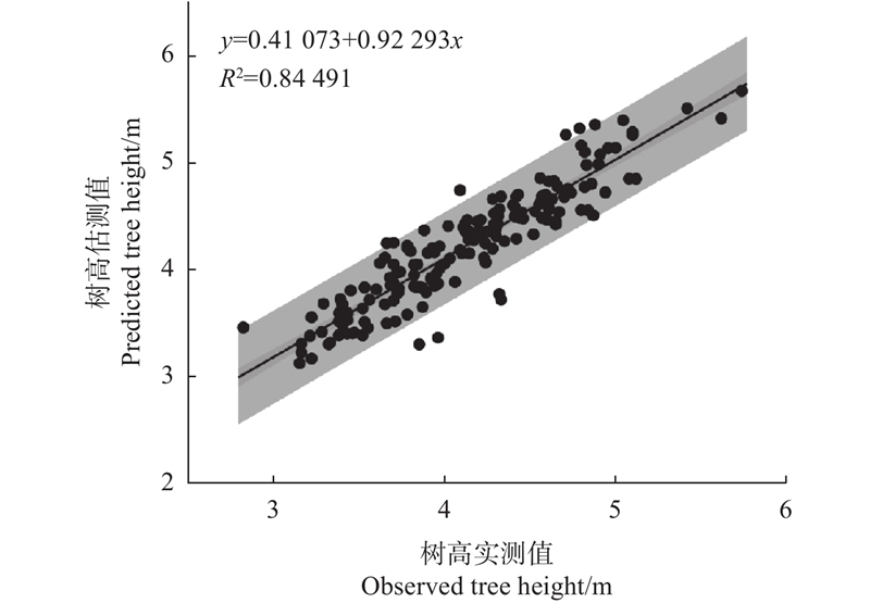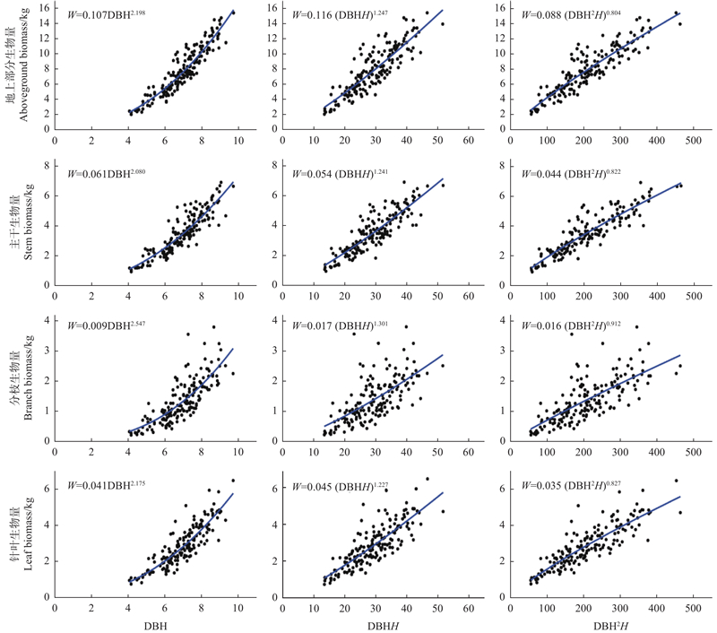 W=aDBHbHc | 地上部分生物量Aboveground biomass | 0.861 | 1.118 | 0.866 | 12.13 | 0.094 | 2.107 | 0.216 | |