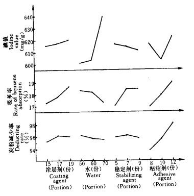 对表面涂层活性炭的制造工艺及配方和产品性能参数进行了研究,通过正交试验找出了较佳配方:表面涂层剂19份,水70份,稳定剂7份,粘结剂12份。由较佳配方所研制的表面涂层炭若原料炭的碘值为680.6mg/g,吸苯率为17.7%,则制得的表面涂层炭性能为:碘值652.3mg/g,吸苯率17.9%,炭粉减少率98.8%;若原料炭的碘值为1020.3mg/g,吸苯率为32.2%,则制得的涂层炭性能为碘值981.1mg/g,吸苯率30.8%,炭粉减少率98.56%。本表面涂层技术工艺简单,易于操作,不影响炭的吸附性能,且成品炭表面光滑,触手后不变黑,不易磨损,性能稳定,因此扩大了活性炭使用性能及应用范围。