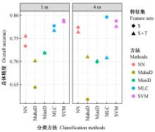 目的: 比较国产高分二号(GF-2)卫星影像不同方法组合下的崇礼冬奥核心区土地覆盖分类和优势树种识别效果, 分析处理单元、空间分辨率、特征集、分类算法对总体精度和树种分类精度的影响, 为崇礼区土地覆盖和树种分类相关研究提供经验参考, 促进国产高分系列数据的行业应用。方法: 以崇礼冬奥核心区为研究对象, 以GF-2影像为数据源, 分别从不同处理单元(像元、对象)、不同空间分辨率(1和4 m)、不同特征集(光谱特征、纹理特征、形状特征)、不同分类算法4个维度对比分析50种不同方法组合下的土地覆盖分类效果, 同时识别白桦和华北落叶松2个优势树种。基于无人机航拍影像和二类小班数据获取训练和验证样本, 采用总体精度和Kappa系数评价不同方法下的整体分类效果, 由制图精度和用户精度计算的调和平均值(F1)评价优势树种分类精度。结果: 1) 像元水平4 m分辨率光谱特征集的MLC法土地覆盖分类精度最高, 总体精度为79.65%, Kappa系数为0.722; 华北落叶松林最高F1为0.79, 对应分类方法组合为对象水平1 m分辨率光谱+纹理+形状特征集的Bayes法; 白桦林最高F1为0.77, 对应分类方法组合为对象水平1 m分辨率光谱+纹理特征集的Bayes法; 2) 不同分类算法的分类精度与空间分辨率、特征集之间没有确定的响应规律, 在控制其他条件尽可能相同的情况下, 空间分辨率提高、特征增加不一定会提升分类精度; 同一分类算法在不同空间分辨率或特征集下, 对其他某一因素变化的响应方向和程度也不相同; 3) 土地覆盖分类在像元水平表现更好, 华北落叶松林的像元和对象水平方法没有显著差异, 白桦林在对象水平表现更好; 4) SVM分类算法在不同处理单元、不同空间分辨率、不同特征集下均有稳定的高精度表现, 监督统计分类算法MLC和Bayes也有很优异表现。结论: GF-2数据在崇礼冬奥核心区土地覆盖分类和优势树种识别方面表现较好, 分类效果受空间分辨率、处理单元、特征集、分类算法等多因素影响。