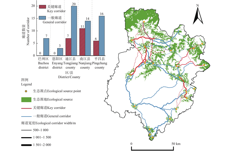 目的: 综合分析四川巴中地区多项生态指标,识别高质量生态源地,优化与修复生态廊道的结构和功能,并构建区域生态安全格局,为进一步保障巴中地区生物流动、维持大巴山脉生物多样性和生态平衡提供科学依据。方法: 选取区域生态系统服务重要性、生态敏感性、景观连通性等指标,筛选确定巴中地区的生态源地;基于Linkage Pathways、Pinchpoint Mapper和Barrier Mapper等方法,测算生态阻力面,识别区域生态廊道和生态节点,构建巴中地区生态安全格局。结果: 巴中地区整体生态系统服务水平较高,总体北部高于南部,生态系统服务极度重要和高度重要的区域面积分别为2 147.13和2 607.24 km2,主要分布于南江县、通江县和平昌县。全区识别确定出23个生态源地,总面积2 484 km2,占总面积的20%,主要集中于北部地区;识别出61条生态廊道,总长度2 459 km,其中关键廊道23条、一般廊道38条;识别确定生态网络中极重要生态保护区7 742 hm2,一级生态障碍修复区5 029 hm2,生态断裂点 65个,其是巴中生态系统中需要重点保护和修复的区域。结论: 明确巴中地区生态网络功能关键保护区和修复区,其在林地及山地、耕地、高密度建成区和河流湖泊4种生态系统类型中均有分布。提出的巴中“一屏二带三分区”的生态安全格局构建策略,框架层次清晰,保护和修复区重点突出。
