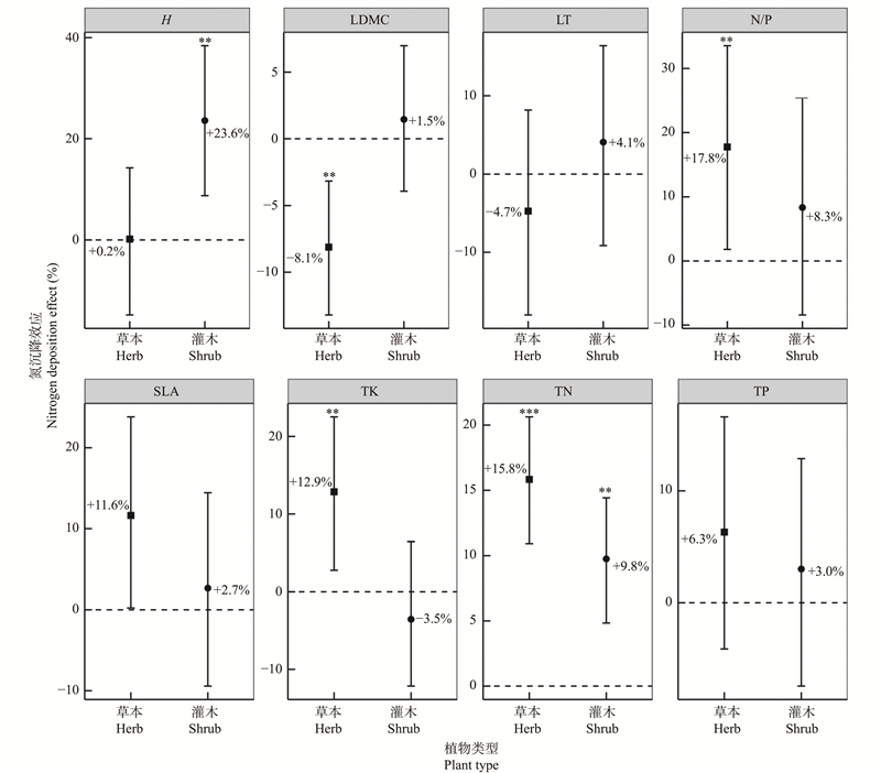 关键词: 氮沉降, 亚热带森林, 毛竹, 叶片功能性状, 草本植物, 灌木植物, 豆科植物