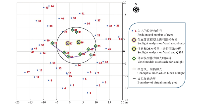 关键词: 计算虚拟测量, 虚拟样地, 光照条件, 冠层遮荫, 三维建模