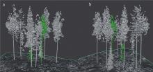 Key words: computational virtual measurement (CVM), virtual sample plot (VSP), light conditions, canopy shading, three-dimensional modeling