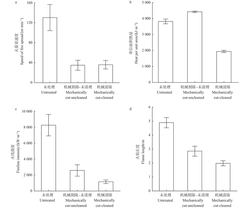 目的: 评估机械清除林区道路两侧易燃细小可燃物对降低火灾风险的效果,探讨其影响火行为的机制,为制定科学的可燃物管理措施提供理论与数据支持。方法: 在塞罕坝机械林场秋季防火期前,通过样地调查与室内试验,测定机械清除前后可燃物的关键参数(高度、载量、含水率等),采用BehavePlus火行为模型模拟不同环境情景下清除前后的潜在火行为特征。结果: 首先,机械清除措施成效显著,道路两侧可燃物的平均高度从0.65 m大幅降至0.18 m,近60%样地的可燃物载量降低50%以上。其次,清除操作直接导致各项火行为指标急剧下降,地表火蔓延速度、单位面积热量、火线强度和火焰长度平均降幅分别达73.00%、43.75%、84.81%和57.98%。尤为重要的是,在可燃物高度较高(如1.0 m)的情况下,清除措施降低火行为的效果更为突出,各项关键指标降幅最高可超过95%。此外,割除后的可燃物若被进一步清理,其降低火灾风险的效果优于仅割除而未清理的方式。模型模拟也证实,在高风速、低含水率和高坡度的极端环境条件下,机械清除能够显著抑制火行为。结论: 机械清除能有效减少道路两侧易燃细小可燃物的高度和载量,显著抑制潜在火行为并降低火灾风险。建议在未来的管理中,应结合区域生态特性,灵活调整清除强度与时间安排,以实现火灾风险最小化与生态系统稳定性的双重目标。