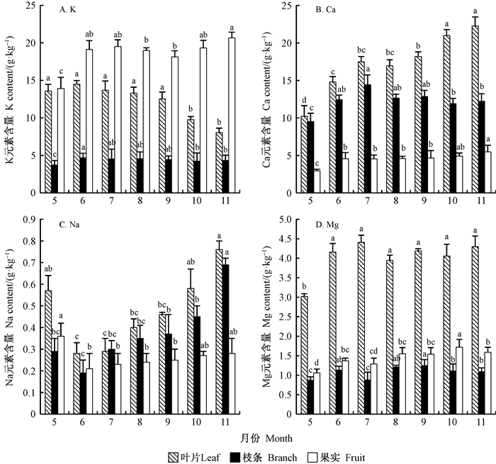 | 指标 Index | 叶片 KLeaf K | 枝条 KBranch K | 果实 KFruit K | 叶片 CaLeaf Ca | 枝条 CaBranch Ca | 果实 CaFruit Ca | 叶片 NaLeaf Na | 枝条 NaBranch Na | 果实 NaFruit Na | 叶片 MgLeaf Mg | 枝条 MgBranch Mg |