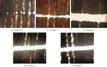 | 切割速度Cutting speed/(mm·s-1) | 切缝宽度 Kerf width/mm | 平均值 Mean value/mm | ||||