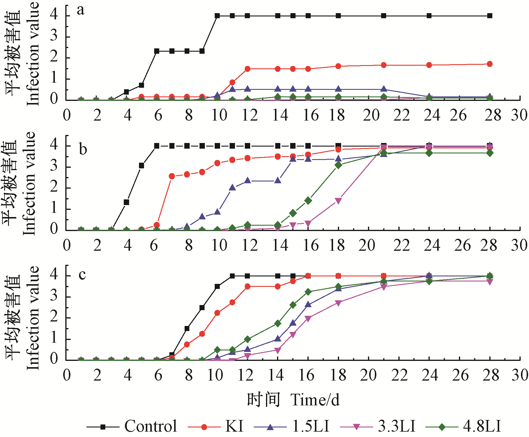 | 被害值等级Class of infection value | 被害值霉变面积Infection area of the tested bamboo block |