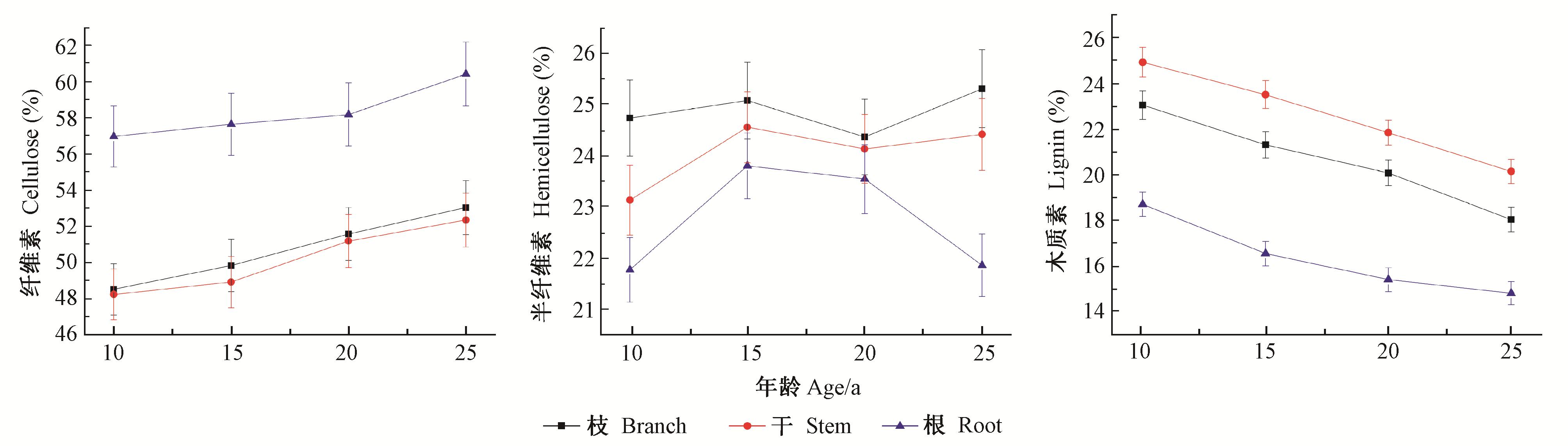 | 试样 Samples | 10年生10-years-old | 15年生15-years-old | 20年生20-years-old | 25年生25-years-old | |||||||||||