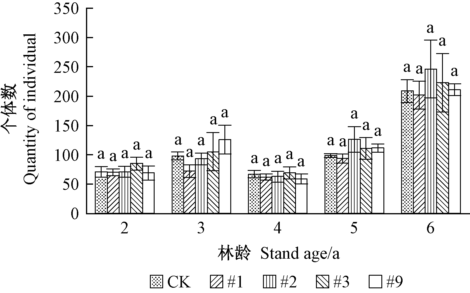 | 株系Strains | 指标Index | 2 a | 3 a | 4 a | 5 a | 6 a |