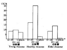 Distribution characteristics of rhizomes at various ages of bamboo shoot use forest"